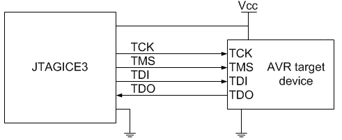 | 10 | GND | 7 | Ground. Both pin 2 and 10 must be connected to ensure that the JTAGICE3 and the target device share the same ground reference. |